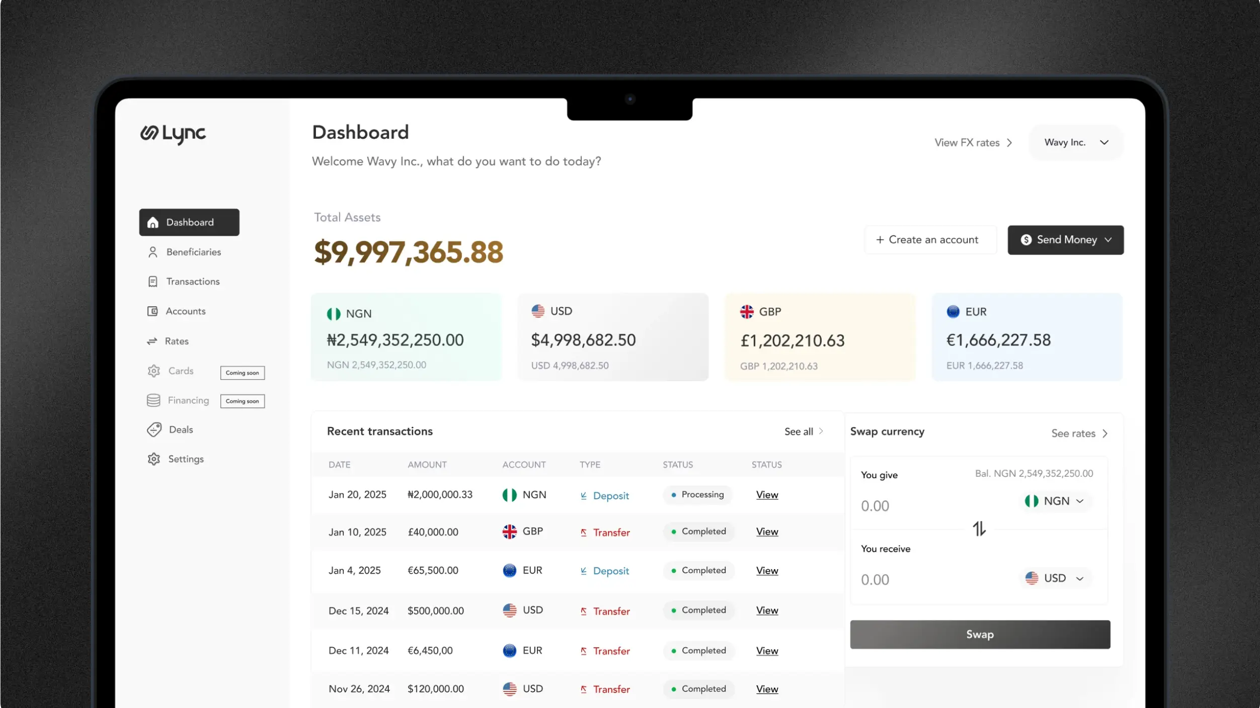 Lync is designed to address these challenges and provide a viable alternative to the existing options for businesses that serve emerging markets. The platform offers multi-currency accounts, starting with USD, EUR, GBP, NGN and Stablecoins, with payments to more than 100 countries. These accounts are more than just wallets, they are fully-featured accounts which support various payment methods, including ACH, Fedwire, SWIFT, and other local payment rails like Faster Payments in the UK, making it easier for businesses with operations across the world to effectively manage their payments and foreign exchange (FX) liquidity on one platform.